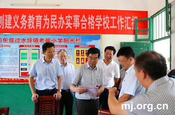 调研组一行先后来到祁东县过水坪镇逢源村、明远峰村,马杜桥乡马杜桥村、石门山村,实地察看了老福小学、福炎中学及易地扶贫搬迁项目,走访部分贫困户,详细了解该县脱贫攻坚、教育扶贫等方面的工作情况及存在问题。调研组在祁东县召开民进中央脱贫攻坚民主监督调研座谈会,黄震在讲话中指出,农村教育事关乡村振兴,一定要加大对农村教育的支持力度,让每一个学生实现成才梦想。祁东开展教育精准扶贫要做到家底清、情况明、查找问题准确,稳步推进教育基础设施建设等各项工作。民进中央要加大对教育精准扶贫民主监督的力度,同时积极探索教育精准扶贫新模式,加大精准扶持力度,助推乡村学校与县办学校均衡发展,不断提高农村贫困户的综合素质和提升劳动技能。