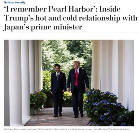 《华盛顿邮报》称,这次会面让安倍很恼怒,体现了特朗普与外国领导人最亲密关系的矛盾本质。