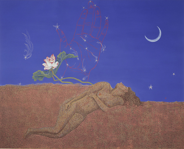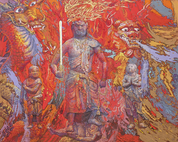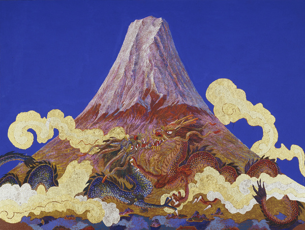 2000年代以后,绢谷幸二不断挑战各种题材,其作品呈现出百花齐放之态。在旭日映衬下的富士山,以日本的神话、传承为题材的古代幻想,龙和不动明王,乃至风神、雷神和七福神,各种象征日本和东方的题材跃然纸上,展现出丰饶的形象,显示了人类想象力和创造力的无限可能性。