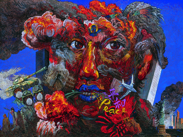 在其充满力量感的绘画世界中,归根到底一以贯之的,是他孩童时期接触到的佛教思想、“无常观”和“不二法门”的教诲。他胸怀“美术具有任何武器所无法匹敌的力量”这一艺术理想和信念,祈愿世界和平,不懈地呼吁人与人之间保持互信。