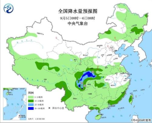 图1 全国降水量预报图(9月4日08时-5日08时)