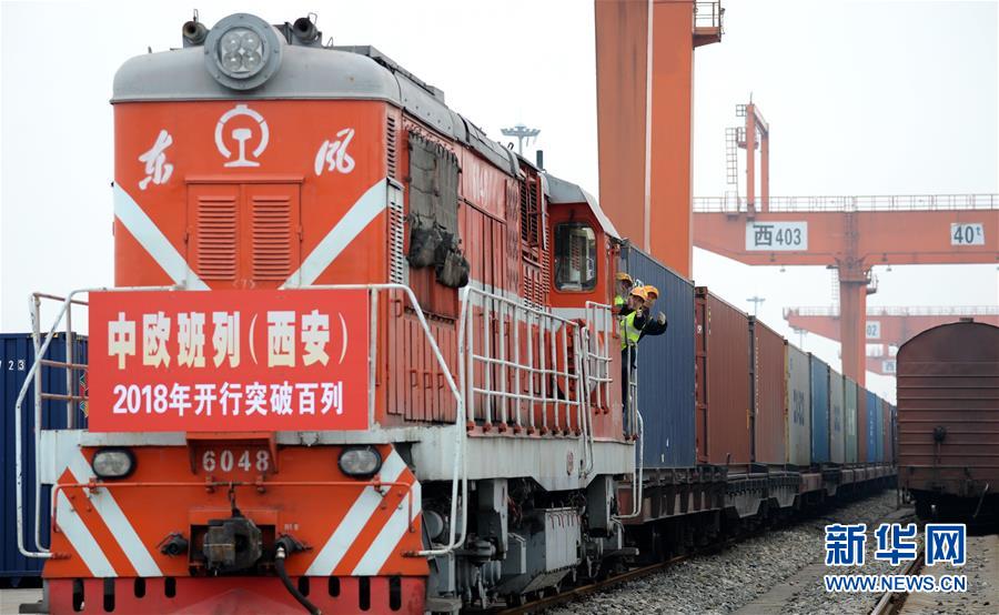 从陕西西安新筑车站开往德国汉堡的X8001次中欧班列发车(3月7日摄)。新华社记者 李一博 摄