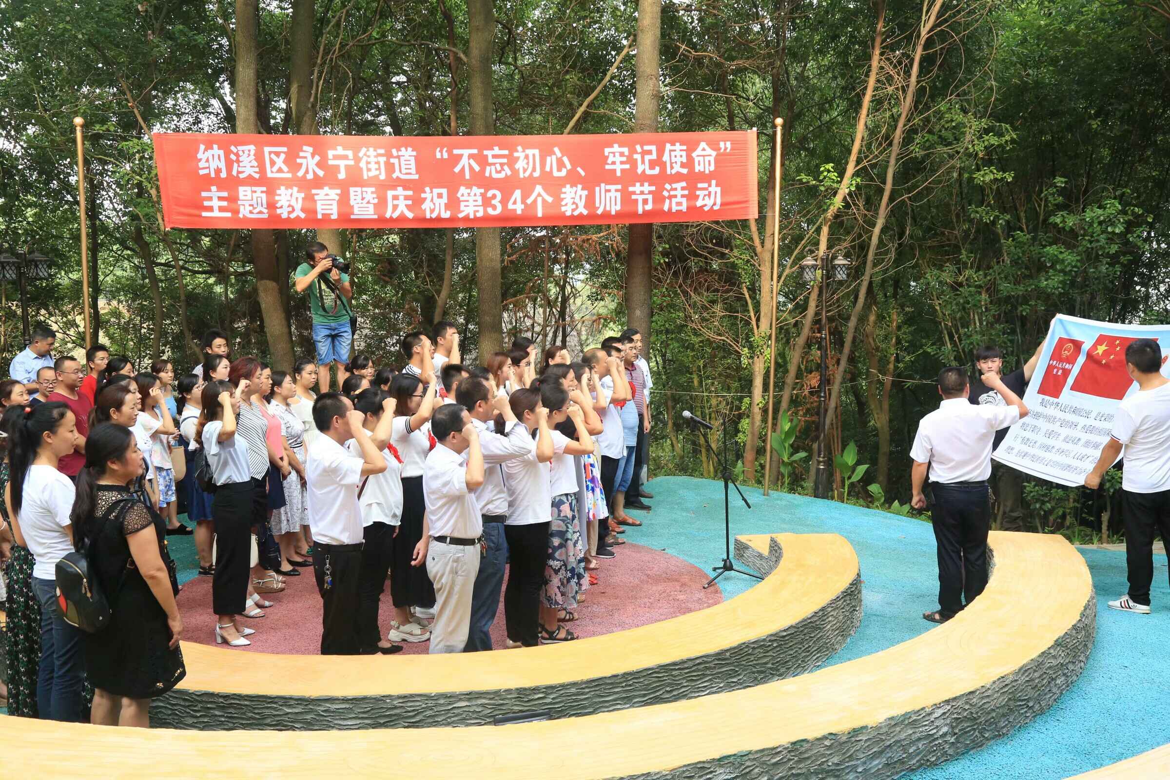 近日,四川省泸州市纳溪区政协与永宁街道政协联络组在护国人文学院教学基地百年护国战壕现场教学点举行“不忘初心、牢记使命”主题教育暨庆祝第34个教师节活动。部分教育界政协委员、教师代表走进战壕,聆听历史、重温誓词、分享师德,进一步提升职业道德修养和依法执教能力。周超华摄