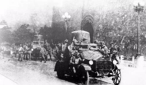 图示:日军装甲车行驶在沈阳的大街上