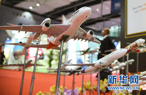 这是在世界航线发展大会上展示的客机模型(9月16日摄)。新华社记者 邓华 摄