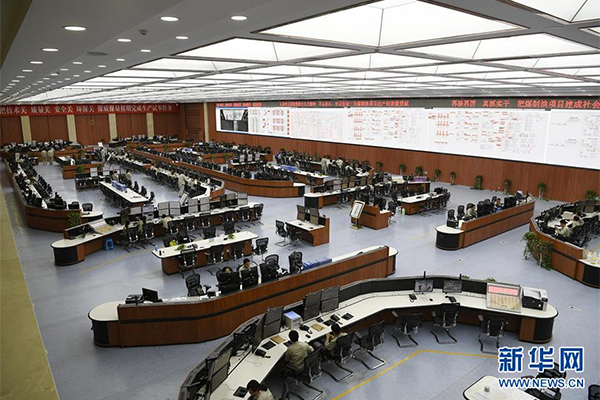 国能神华宁煤集团400万吨煤制油项目中控室(8月3日摄)。新华社记者 王鹏 摄