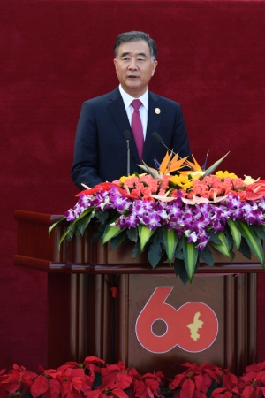 在热烈的掌声中,汪洋发表了热情洋溢的讲话。他说,在这金风送爽、瓜果飘香的美好时节,很高兴带着党中央和习近平总书记的重托,带着全国各族人民的祝福,来到美丽的银川,同宁夏各族人民共同庆祝自治区成立60周年。我谨代表中共中央、全国人大常委会、国务院、全国政协、中央军委,向自治区表示热烈的祝贺,向680万宁夏各族儿女致以节日的问候。