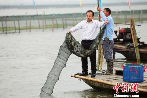 资料图:蟹农正在捕捞大闸蟹。周建琳 摄