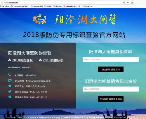 阳澄湖大闸蟹防伪查询官网。 来源:网页截图