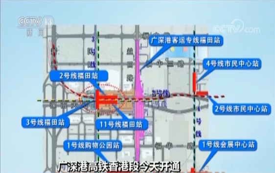 中国铁建铁四院副总工程师潘志强说,福田是香港进入内地的第一站,这里是亚洲最大的地下高铁站,连接起深圳所有的地铁线,旅客可以从这里到达深圳的各个地方,让香港和深圳紧紧地连接在一起。