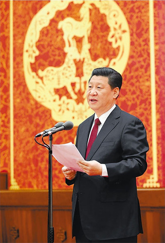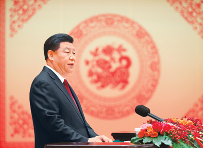 2015年2月17日,中共中央、国务院在北京人民大会堂举行2015年春节团拜会。中共中央总书记、国家主席、中央军委主席习近平发表重要讲话。新华社记者 姚大伟摄