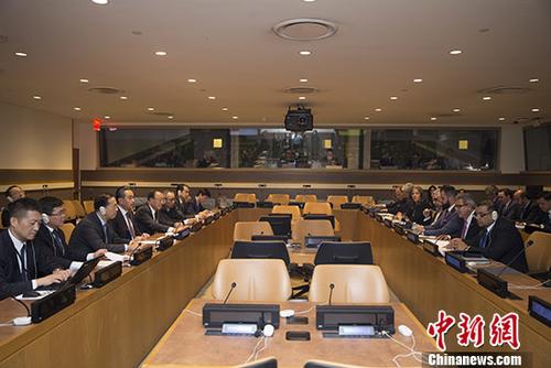 当地时间9月25日,中国国务委员兼外长王毅在纽约联合国总部出席中国—拉共体“四驾马车”外长第六次对话。 中新社记者 廖攀 摄