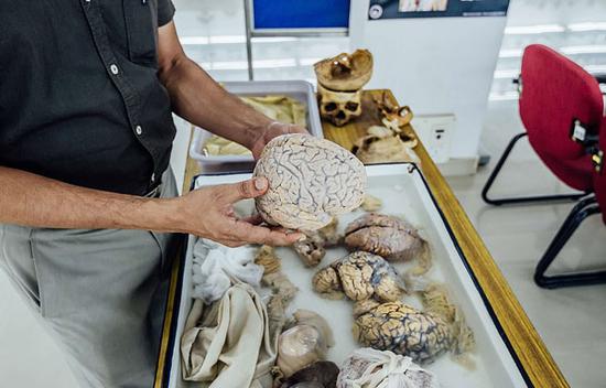 据悉,该博物馆为印度首家人脑博物馆?;竦靡盘寰柙?,研究所的科学家便以此为标本,检查人体大脑及其他器官的各项机能及构造。为消除大众对人体器官的神秘感,研究人员带领游客参观时会鼓励游客与所展出的大脑来个“亲密互动”,指导游客用手拿起人脑仔细观察一番。