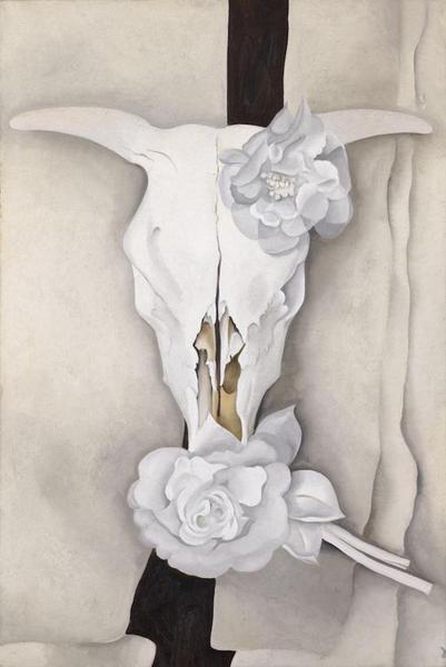 乔治亚·欧姬芙 《牛头骨与白玫瑰》1931年,芝加哥艺术博物馆,阿尔弗雷德·施蒂格利茨藏品,乔治亚·欧姬芙捐赠
