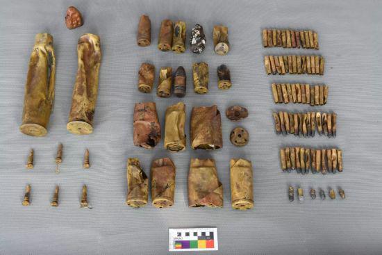 调查提取出水大量遗物,择选出的标本达500余件,种类十分丰富,包括铁、木、铜、铅、玻璃、陶瓷、皮革等材质。其中,铁质品以底舱的梁架、肋骨、舷板为多见,木质品有甲板、舱室壁板、格扇门等,铜质品有炮弹、管材、舷窗等。个别文物标本还刻有德文铭牌(印证此舰由德国制造)。代表性文物包括:铁质小锅炉(为启锚机提供蒸汽动力)、斜桁、大横肋、舷窗、舱门、铁甲堡衬木等舰体结构设施,毛瑟步枪子弹、威布列左轮手枪子弹(WEBLEY)、37毫米哈乞开司速射炮弹、47毫米哈乞开司速射炮弹等武器弹药,锉刀、扳手、冲子等检修工具等。此外,还发现53毫米格鲁森炮弹药筒、120毫米炮弹引信,这两类武器均不见于“经远舰”出厂档案,应属1894年“甲午海战”前紧急添置的武器装备,以加强艉部火力。