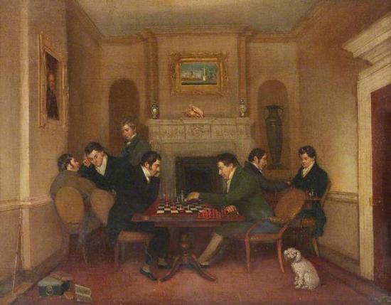 18世纪后期到19世纪,绘画中的双陆棋逐渐被国际象棋所取代。国际象棋在出现伊始就开始频繁地见诸于画作之中。无论是利明(Leeming)的作品《赫里福德国际象棋俱乐部》(Hereford Chess Club)中享受比赛的棋手,还是丹尼尔(Daniel)的作品《国际象棋手》(Chess Players)中眉头紧锁的棋手,都是这种娱乐新风尚的参与者。新的游戏不再出现于低俗的场景中,不过,也有个例——比如在一个无名苏格兰画家的作品中,仍旧出现了半露酥胸的女性。