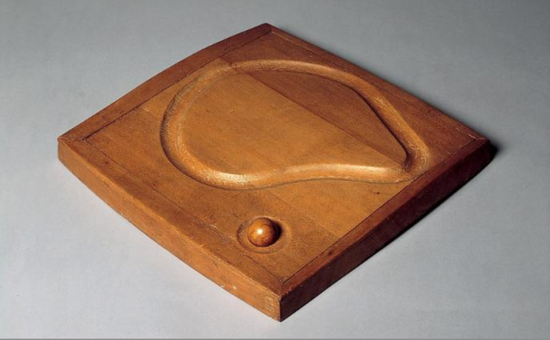 其他艺术家则探索了游戏的物质性。例如,贾科梅蒂(Giacometti)的《环道》(Circuit)是一个方形木板,木板中间是一个水滴状的凹槽,旁边的小球可以沿着这个轨道转动?!痘返馈氛孟粤送嬗蜗肥彼痔逖榈降拇ゾ趵秩?。