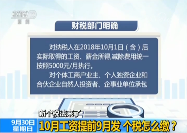 值得注意的是,10月1日恰逢国庆长假,如果10月份工资提前到9月底发放,是否按5000元新起征点执行?