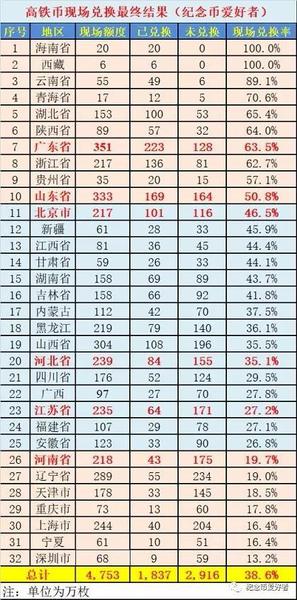 近日,央行在官网上公布了高铁纪念币现场兑换的最终数据,至此高铁纪念币的发行正式落幕。