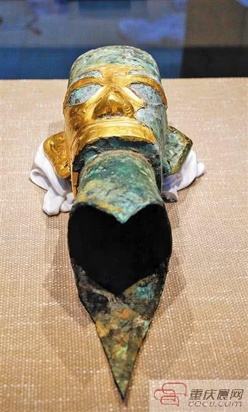 1986年的一天,考古工作者在四川省广汉三星堆遗址发现了两个震惊世界的祭祀坑。坑里埋藏着距今3000年前古蜀文明的最高成就:大量的玉器、金器、青铜器、骨器、象牙、海贝等器物在这里被分层叠放,每一件都堪称国之瑰宝。在这些宝物中,各种类型的人形器尤具特色,反映出古蜀青铜文明独特的文化。戴金面罩青铜人头像是三星堆遗址中的重要文物之一,虽然仅二号坑出土的青铜人头像就有44件,但戴金面罩的只有4件。