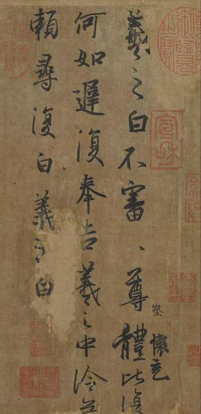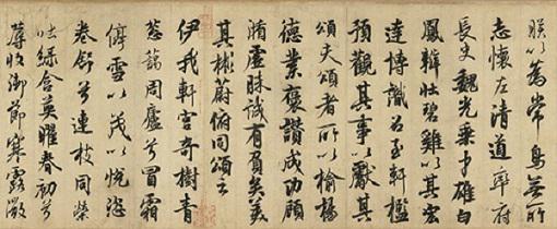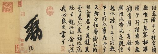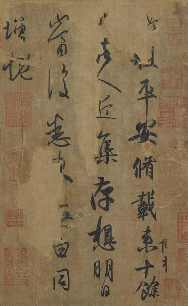 书信的开头提到:“非才当剧”(我不是人才却担当大任)这句话,透露出米芾第一次出任地方行政首长,戒慎恐惧的心情。然而,在诗中米芾也回忆起数年前与朋友相聚,共游山川、玩赏文物,或是雅集盛筵的欢乐情景。这种闲适自得的心情,与即将接踵而至的繁忙政事,形成强烈的对比。
