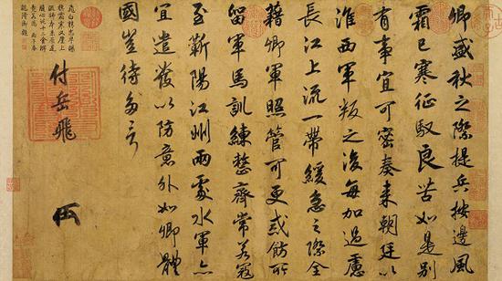 宋高宗赵构 御笔《赐岳飞手敕卷》局部