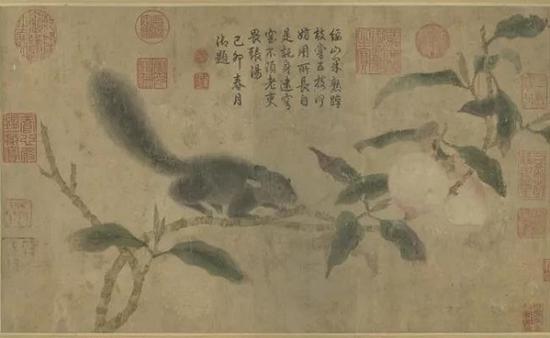 元 钱选《桃枝松鼠》
