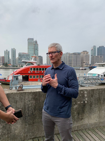 10月9日上午9:30,美国智能手机制造商苹果公司CEO蒂姆·库克再访上海。当天上午,库克从上海杨家渡渡口搭乘轮渡过黄浦江,前往苹果的南京东路店探店。