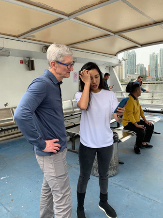 库克在轮渡上还与摄像师陈曼就iPhone摄影进行了交流。库克下午还将出席一位艺术家用iPhone拍摄的摄像展。