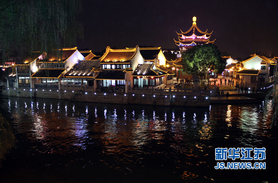 资料图 江苏苏州大运河城区段景点白居易纪念苑夜景