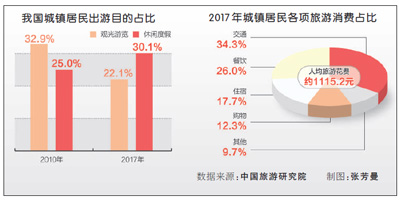 数据显示,随着“80后”“90后”成为出游主力,品质游、深度游、定制游等高端产品走俏。游客花在美食、文化娱乐等方面的消费比重大幅增加。2017年我国游客境内旅游餐饮消费同比增长201%,境外旅游餐饮消费同比增长14%。