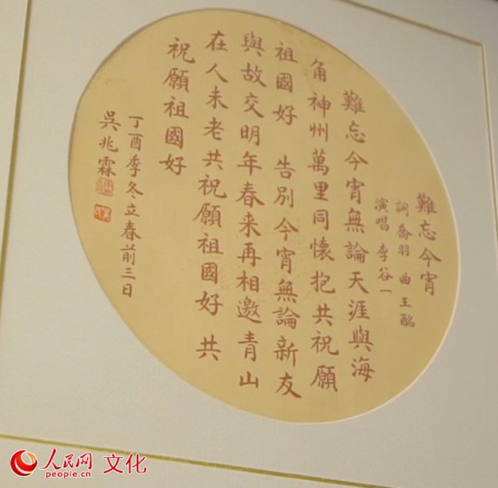 李谷一家中所挂《难忘今宵》的字画