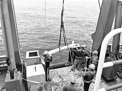科考队员在布放水下无人滑翔机