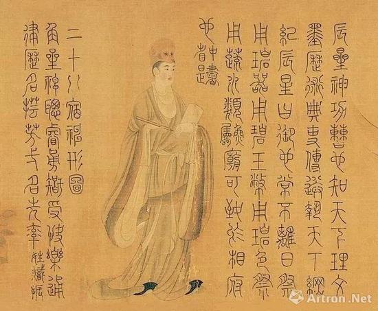 在这般由商人、学者、藏家构成的书画交易模式下,诸多重量级作品源源不断地流入了关西地区。其中,最为人所称道的就是阿部房次郎所购北京清末至民初书画收藏大家完颜景贤藏品,总共8件:(传)张僧繇《五星二十八宿神形图卷》、(传)唐王维《伏生授经图卷》、宋李成王晓合作《读碑图轴》、宋燕文贵《溪山风雨图卷》、宋李公麟《临卢鸿草堂十志图卷》、宋宫素然《明妃出塞图卷》、宋龚开《俊骨图卷》和元赵孟頫《真书三门记卷》。还有部分完颜景贤藏品被冈仓天心买走,现藏美国波士顿美术馆。
