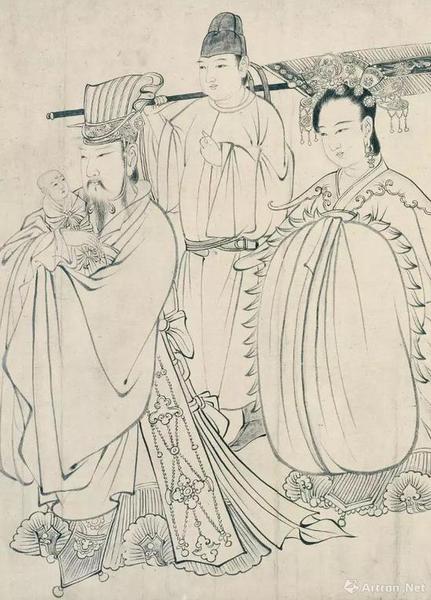 20世纪初,日本人山本悌二郎在中国闽浙京鲁一带搜购书画时,得到一幅《送子天王图》,并携回日本,藏于自家澄怀堂,后归大阪市立美术馆。对于这件《送子天王图》杨仁恺先生曾说,“单从图版观之,认为虽非真迹,至少时代当相去不远。近日在大阪美术馆亲眼见到,无论从笔法气韵诸方面观之时代比原先想象晚很多”。杨先生此一较感性的说法,也是今日多数学者对这幅画的感觉。
