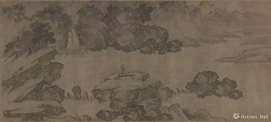 (传)宋李成·王晓,《读碑窠石图》轴,日本大阪市立美术馆藏