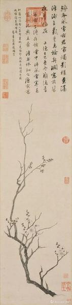 唐寅,《一枝春图》轴,明正德四年(1509),纸本水墨,120.9×28.4 厘米,日本大阪市立美术馆藏