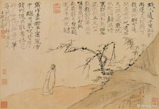 石涛,《东坡时序诗意图》册(全十二开),第十二开,清,纸本浅设色,26.8×38.6 厘米,日本大阪市立美术馆藏