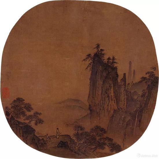 款《观瀑图》,《名贤宝绘》册之七,南宋,绢本水墨浅设色,23.2×23.4厘米,日本大阪市立美术馆藏