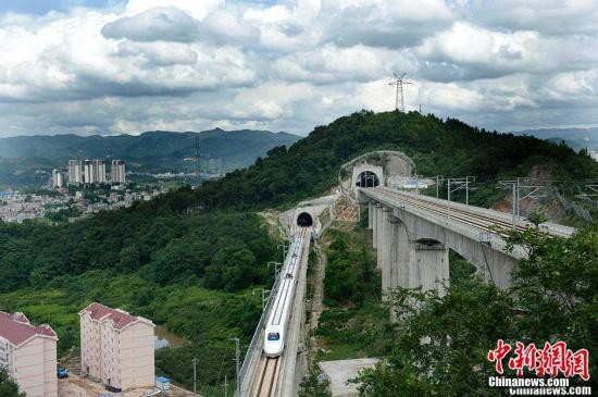 资料图:贵广高铁、沪昆高铁穿隧道而过。中新网记者 李泊静 摄