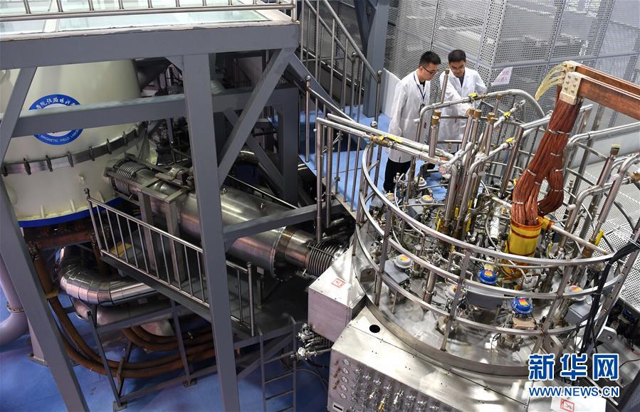 2017年9月27日,工作人员在合肥查看“稳态强磁场实验装置”。 新华社记者刘军喜摄