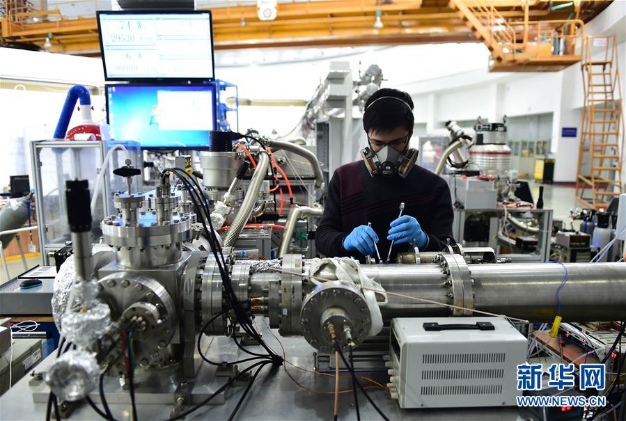 2016年4月9日,科研人员在位于合肥的国家同步辐射实验室进行实验操作。 新华社记者刘军喜摄