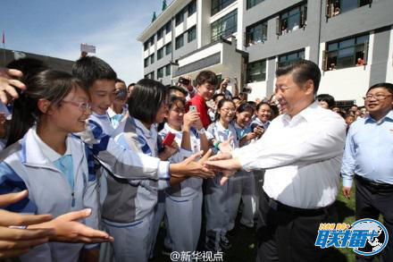 2016年9月9日,习近平离开北京市八一学校时与教师和学生依依惜别。图片来源:新华社
