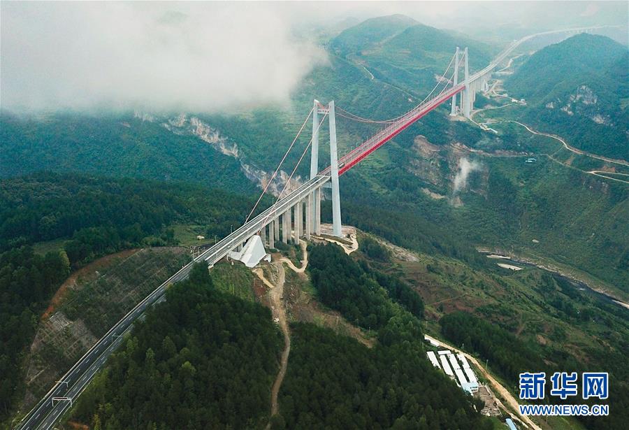 贵阳至瓮安高速公路上的清水河大桥(8月27日无人机拍摄)。该桥主跨1130米,是世界上最大单跨板桁结合加劲梁悬索桥。新华社记者 刘续 摄