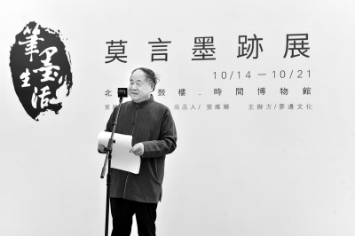 诺贝尔文学奖得主、著名作家莫言的首个书法个展《笔墨生活——莫言墨迹展》昨天在北京时间博物馆正式开展,莫言近百幅书法作品展出。书法作品对面的展览柜里,还陈列着莫言“走出去”的几十部文学作品,书和字相互交融,它们以无声对话的方式,述说着莫言的笔墨生活。
