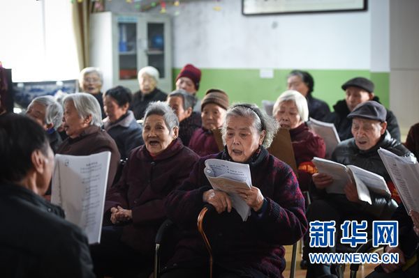 老人们在武汉市武昌区一家民办养老院内练习合唱(2015年1月22日摄)。 新华社记者肖艺九摄