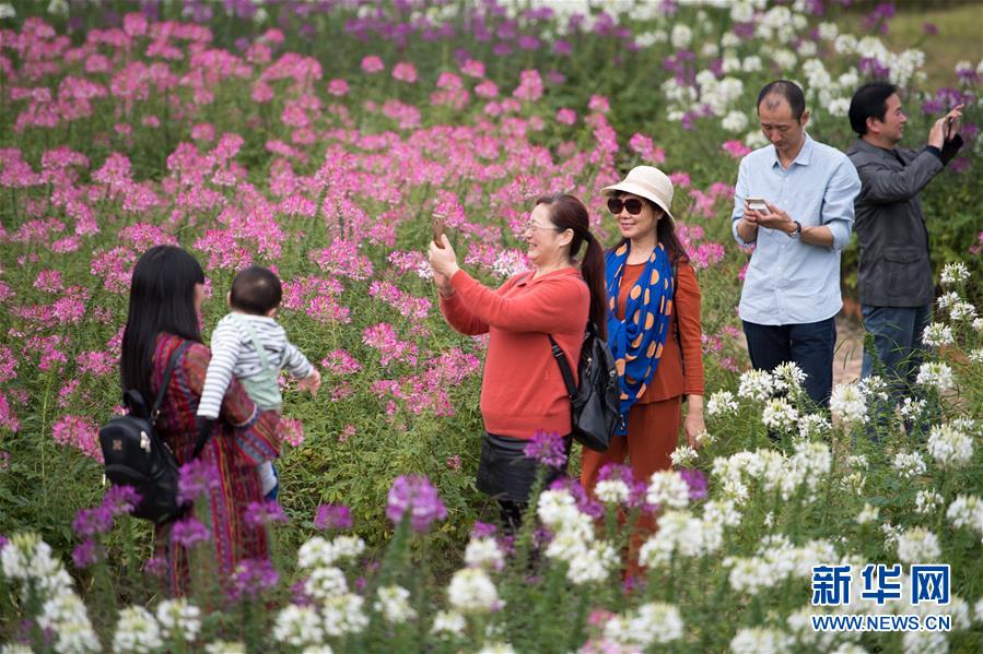 游客在湖北武汉黄陂区木兰花乡景区游玩(2017年10月7日摄)。新华社记者 熊琦 摄