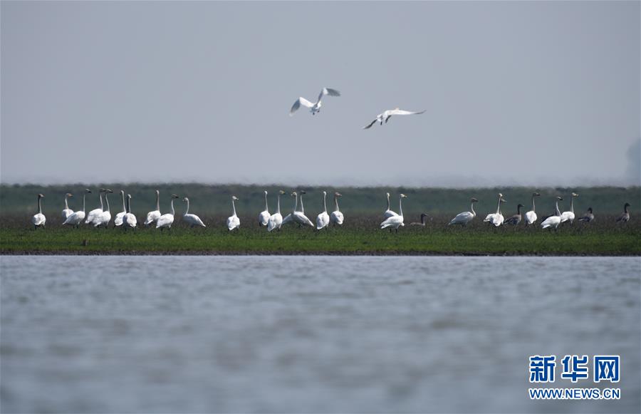 一群小天鹅在东洞庭湖国家级自然?;で诰奂?月26日摄)。近年来,湖南自上而下发动省、市、县、乡、村五级干部打“洞庭湖生态环境保卫战”。 新华社记者 李尕 摄