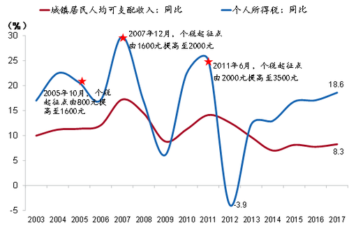 图 5:个税增速下降短期化且长期高于居民可支配收入增速