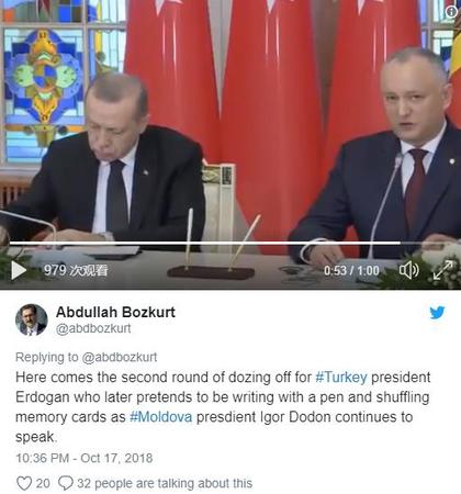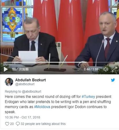 原标题:听摩尔多瓦总统讲话 埃尔多安睡得像我们上课一样